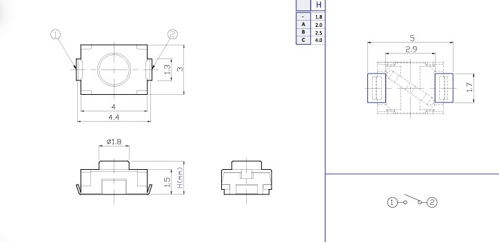 Vertical pushing SMT type|3.9*2.9*(H)mm|Inner dust cover used