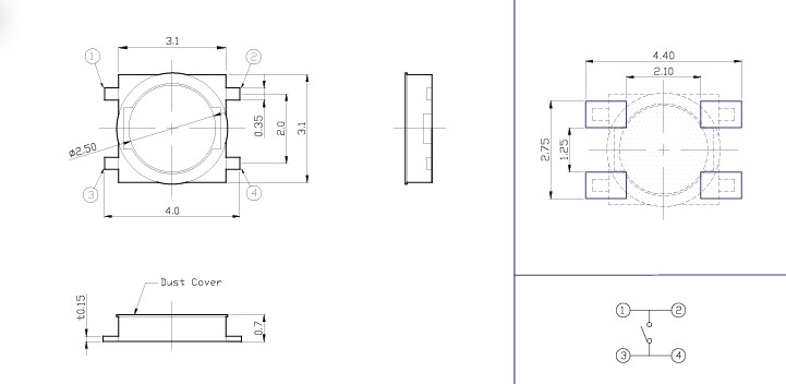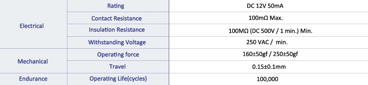 FEATURESVertical pushing SMT type|3.3*3.3*(H)mm|Inner dust cover usedApplicationsAll kinds of electronic equipments such as car audio and home appliances | Digital Camera,Camcorders,Mobile Phones