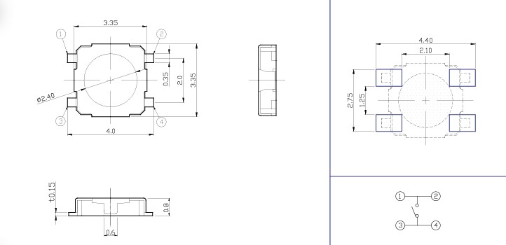 Vertical pushing SMT type|3.3*3.3*(H)mm|Inner dust cover used