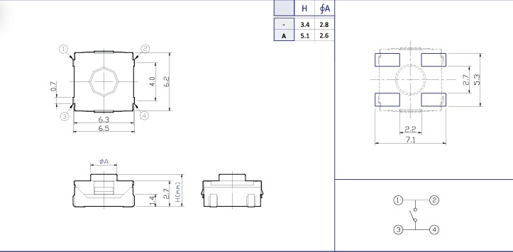 FEATURESLong travel with rubber Knob|6.2*6.3*Hmm with J bent terminals|Dust proof typeApplicationsAll kinds of electronic equipments such as car audio and home appliances | Digital Camera,Camcorders,Mobile Phones