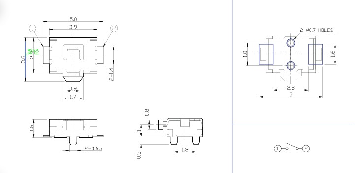 Side pushing SMT Tact type|3.9*3.6*H(1.5mm)|Various terminal types|Inner dust cover used