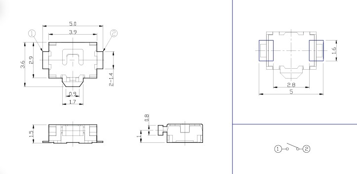 Side pushing SMT Tact type|3.9*3.6*H(1.5mm)|Various terminal types|Inner dust cover used