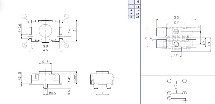 Side pushing SMT Tact Vertical pushing SMT type|3.9*2.9*(H)mm|Inner dust cover used