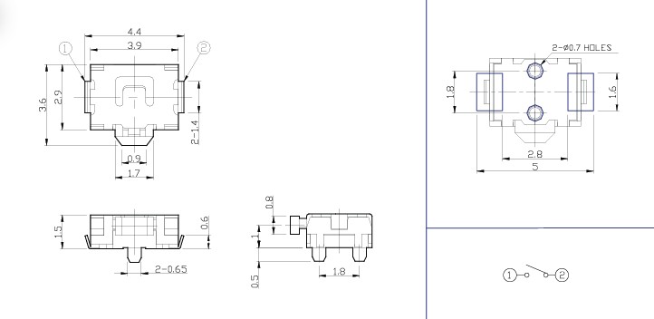 Side pushing SMT Tact type|3.9*3.6*H(1.5mm)|Various terminal types|Inner dust cover used