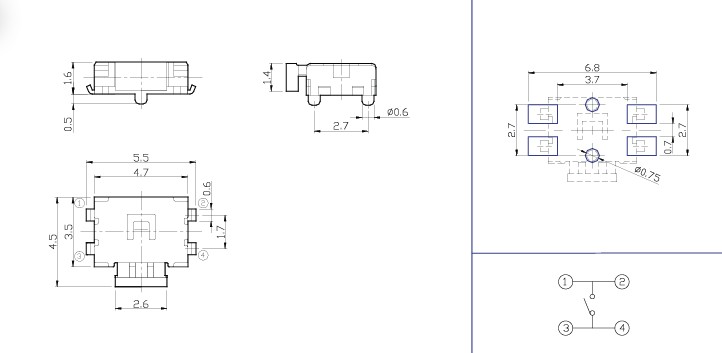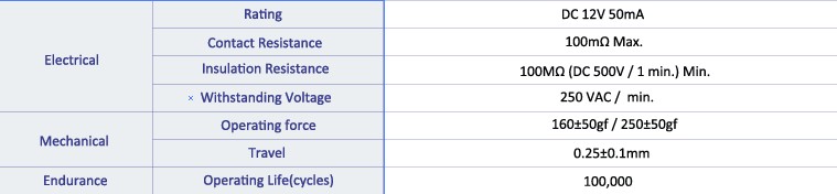 FEATURESVertical & Horizontal pushing types|4.5*4.5*(H)mm with various Knob lengthApplicationsAll kinds of electronic equipments such as car audio and home appliances | Digital Camera,Camcorders,Mobile Phones