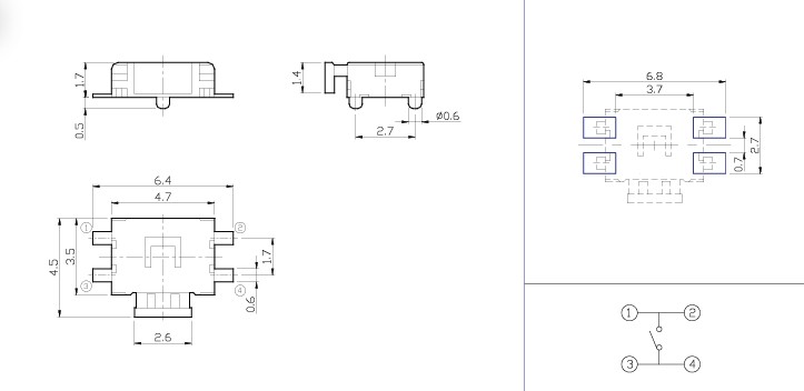 Vertical & Horizontal pushing types|4.5*4.5*(H)mm with various Knob length