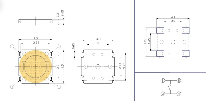 FEATURESVertical & Horizontal pushing types|4.5*4.5*(H)mm with various Knob lengthApplicationsAll kinds of electronic equipments such as car audio and home appliances | Digital Camera,Camcorders,Mobile Phones